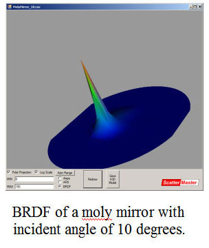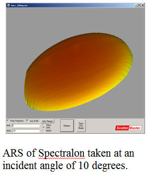 Data can be displayed in either BSDF or ARS units. Full hemisphere scans are done in 5-30 seconds depending on scan resolution.